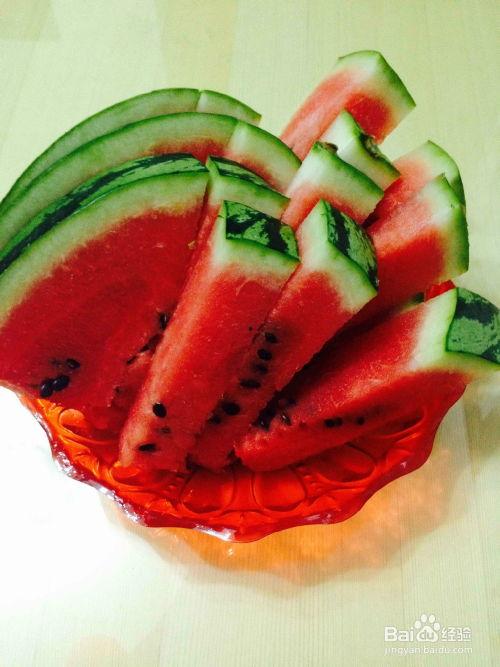 2. 竖切法:将西瓜放在切菜板上,用刀从顶部开始,沿着西瓜的纹理竖着切。这种方法可以让西瓜肉保持完整的形状,看起来更美观。
